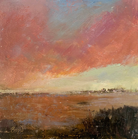 I am inspired by the feeling of open spaces, water, and big skies. I like the idea of each painting being a journey, ending with a beautiful destination.